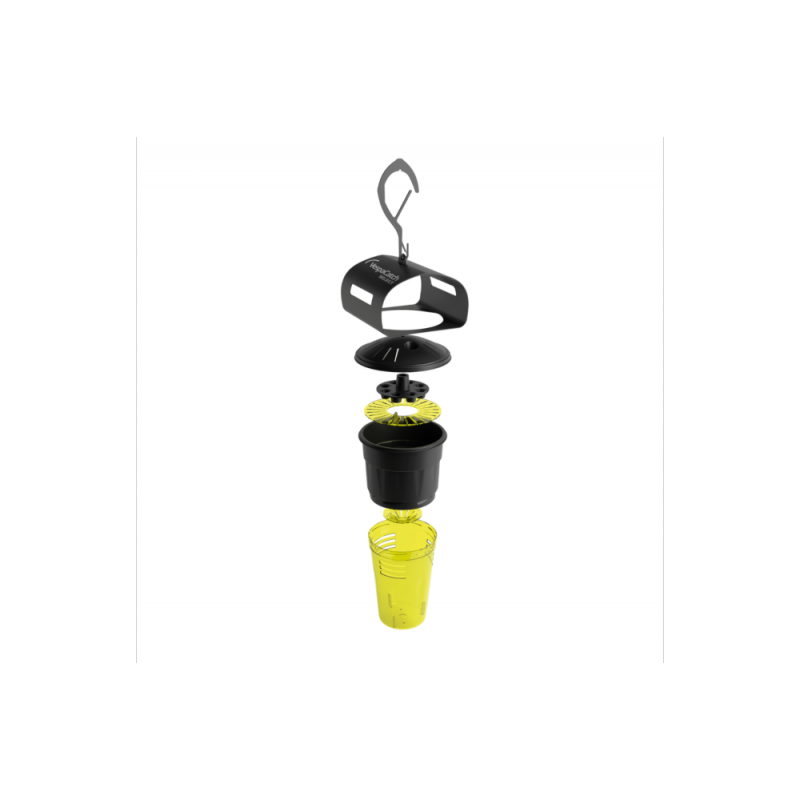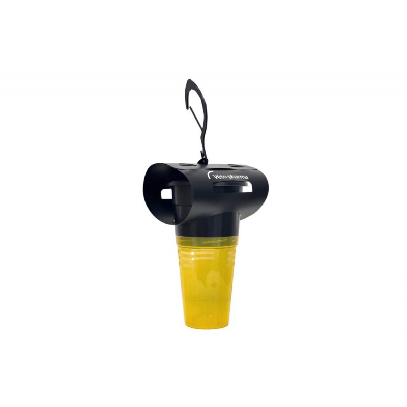 Piège avec attractif pour la capture des guêpes et frelons adultes en extérieur. Le principe du piège est celui d’une nasse : entrée facile, sortie impossible. Une fois attiré à l’intérieur du piège la guêpe ou le frelon ne peut plus en sortir. L’insecte meurt noyé. Le piège peut être posé sur une table grâce à ses trois pieds, ou bien suspendu à l’aide...