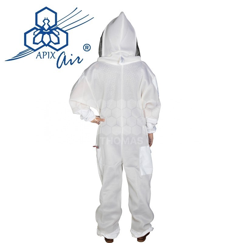 La combinaison APIX AIR est composée de 2 poches poitrines, l’une avec fermeture éclair, l’autre avec un scratch, 2 poches sur les cuisses, 2 poches à outils sur l’arrière, d’élastiques passe-pouce et de fermetures éclair et élastiques aux chevilles.